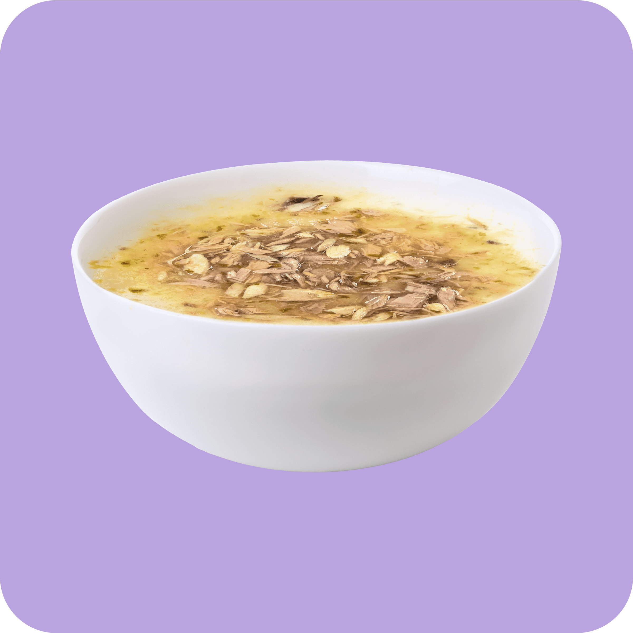 Caldo de pescado, atún (12%), caballa (4%), almidón de tapioca modificado, algas deshidratadas (0,05%).
