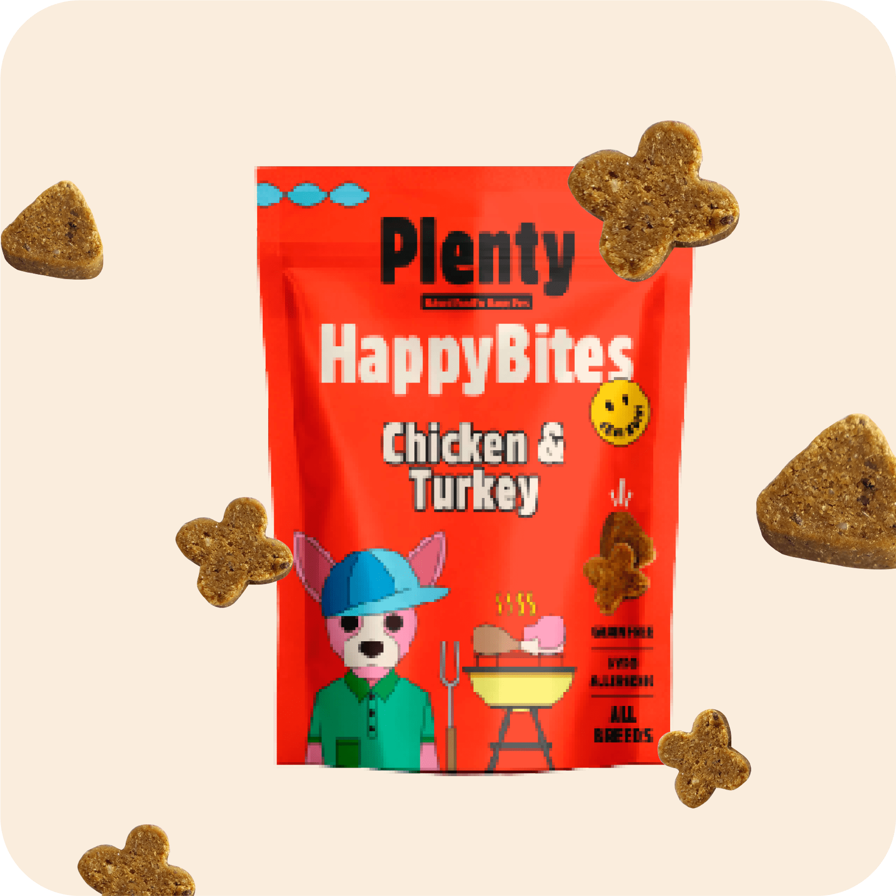 Los Happy Bits de pollo y pavo son un delicioso snack elaborado con ingredientes naturales.